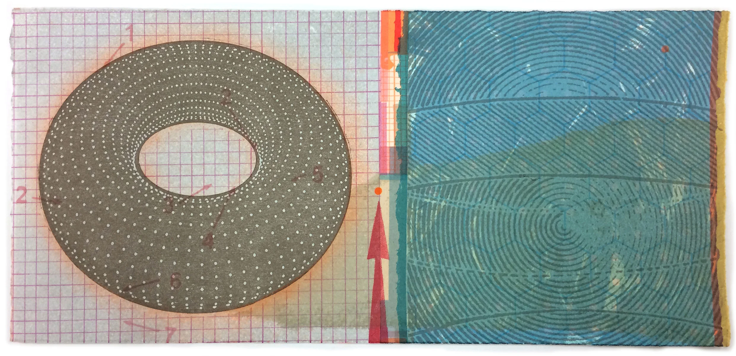 Carrie Ann Plank, Strata Series #18, Screenprint, letterpress, Pochoir, 7” x 15”, 2015